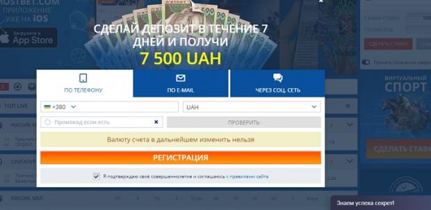 Бонус 25 000 рублей на первый депозит от Mostbet