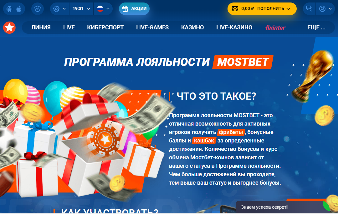 Это вознаграждение для активных участников, которые постоянно пополняют счет, заключают пари, играют в казино, выполняют задания и так далее. За все это им начисляются Мостбет-коины, которые потом можно обменивать на бонусные баллы, фрибеты и фриспины. Остальные подробности этой акции от Mostbet читайте на сайте компании.
