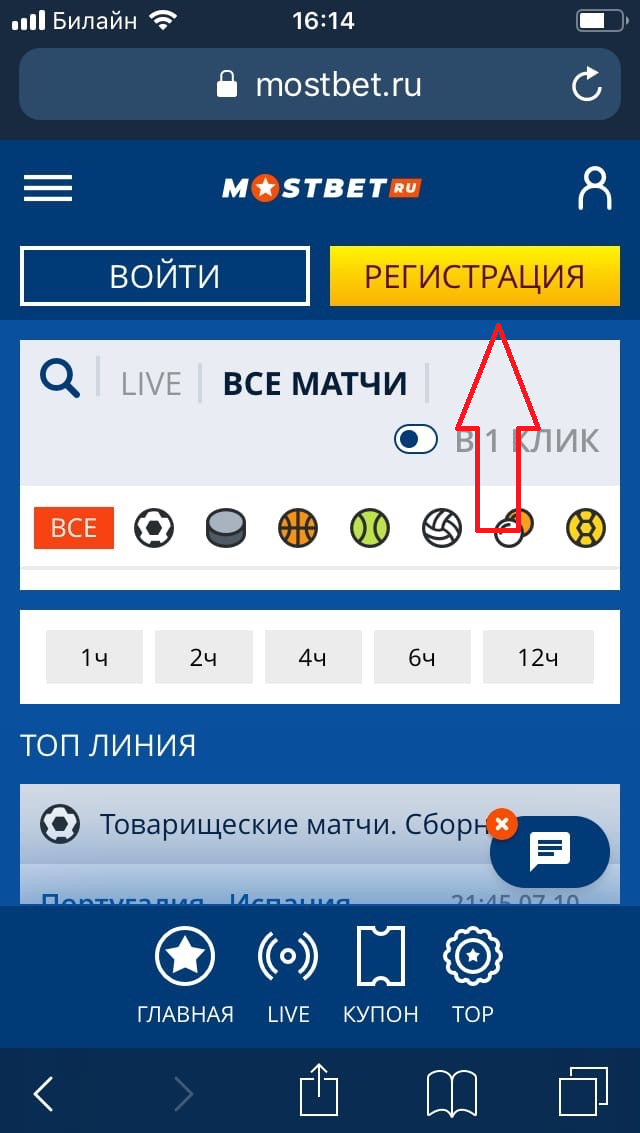 Регистрация на сайте Мостбет