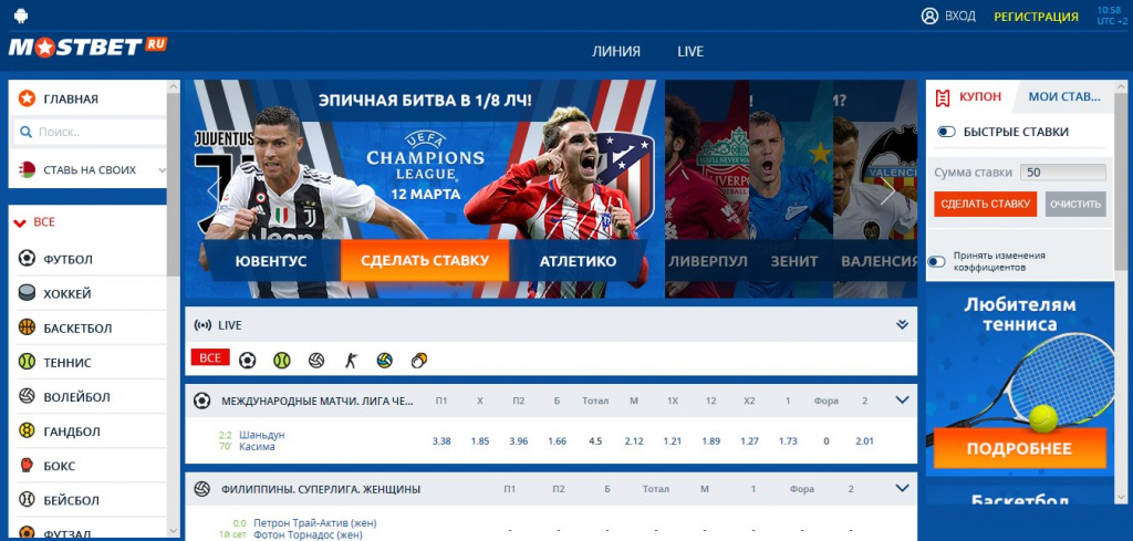 Самые интересные матчи и любые исходы доступны для ставок!
