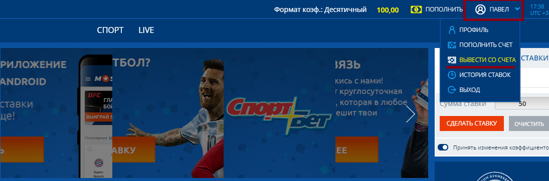 Меню включает традиционные разделы – «Профиль», «Пополнить счет», «Вывести средства», «История ставок» и опцию «Выход». В аккаунте также можно выбрать нужную линию – прематчевую или лайв-линию. Наличие личного кабинета позволяет получать бонусы и участвовать в акциях, оперативно связываться с саппортом для решения важных вопросов.